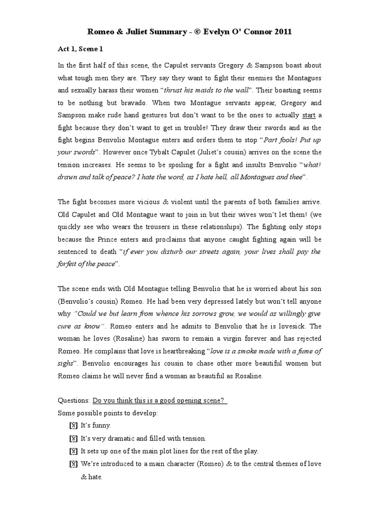 Romeo Juliet Act 3 Scene 1 STUDY GUIDE ANSWERS 2. What is unique about Benvolio and Mercutios conversation at the opening of the act. International Digital Childrens Library.